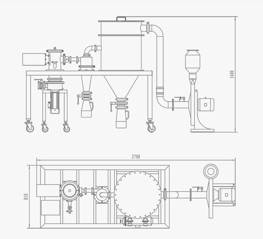 - 結合氣流粉碎、氣流分級、機械粉碎于一體的三合一組合式結構。